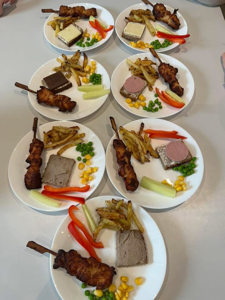- 11.00-11.30: Frokost som består af rugbrødsmadder med varieret pålæg og grønt. Må Der bliver serveret varm mad jævnligt.